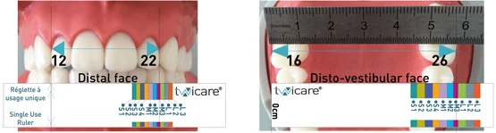 Измерения проводятся с помощью специальной одноразовой линейки путём помещения указателя линейки на дистальную поверхность верхнего бокового резца, учитывая положение окклюзионной плоскости.