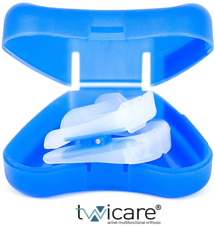 Аппарат для выдвижения нижней челюсти Twicare® (Mandibular advancement device, MAD) удерживает нижнюю челюсть в переднем положении, что приводит к смещению корня языка вперед и расширению просвета дыхательных путей в области глотки.